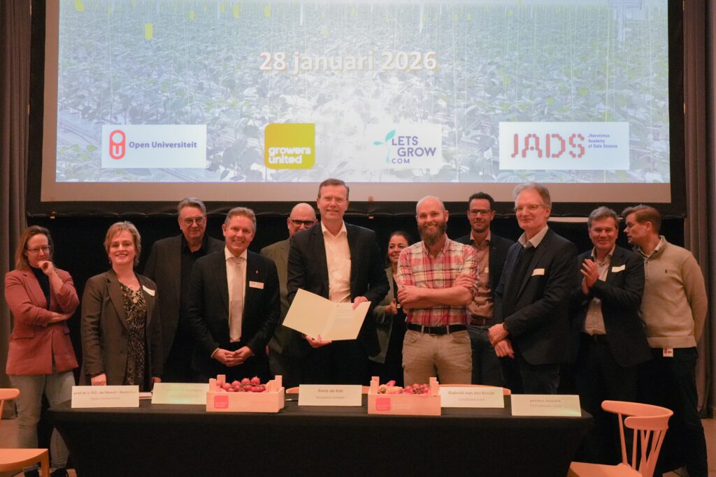 Als onderdeel van deze samenwerking is aan de Open Universiteit de bijzondere leerstoel Data Science & AI, ingesteld door Growers United en LetsGrow.com. Daarnaast worden bij JADS, het data science instituut van de TU Eindhoven en Tilburg University, een tweede bijzondere leerstoel en twee Engineering Doctorate-posities ingericht. De bijzondere leerstoelen worden ingevuld door prof. dr. Roger Bons (Data Science & AI) en prof. dr. Nadine Roijakkers (Open Innovatie).